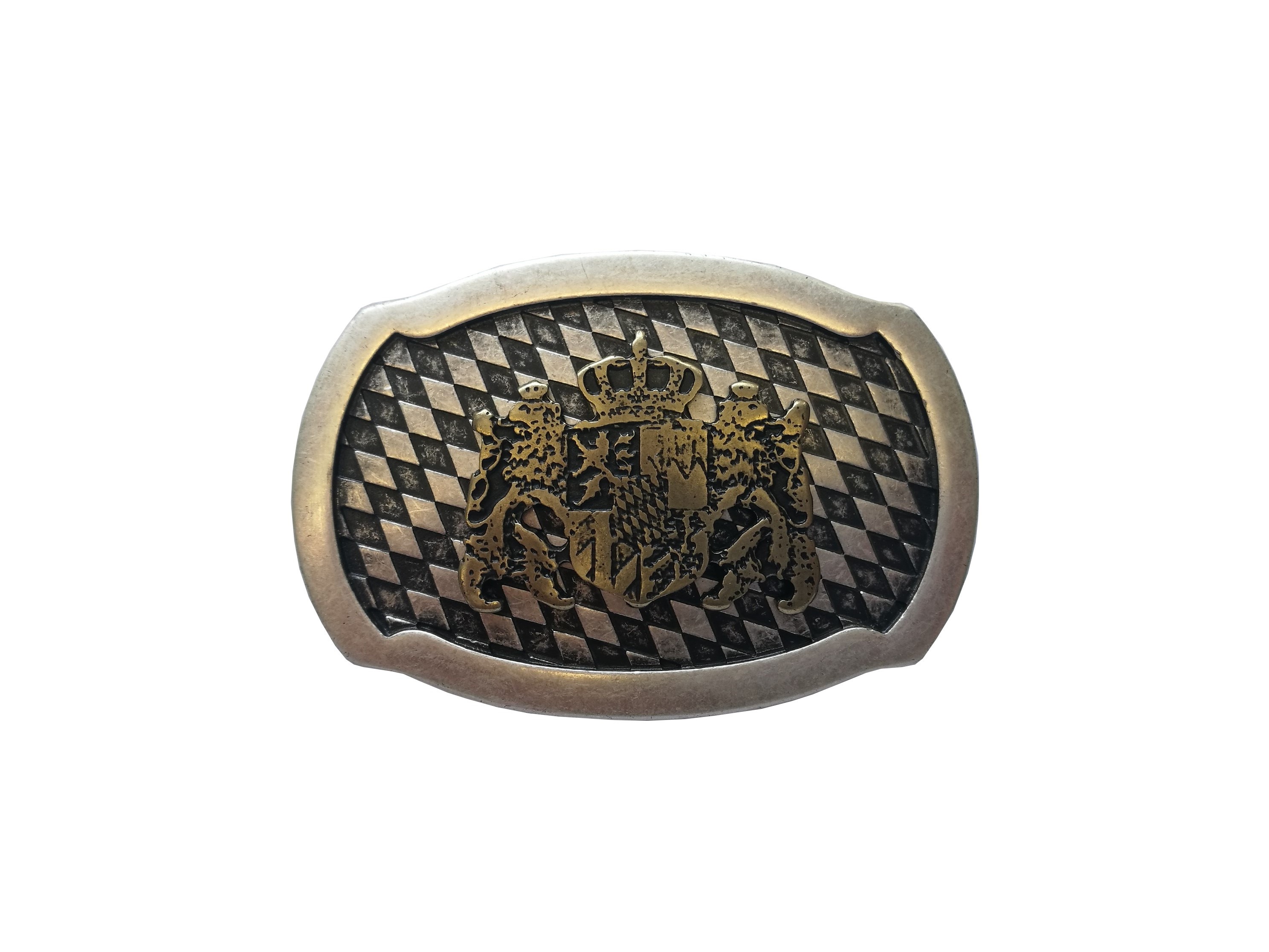 Dezent und doch ein wenig verspielt. Diese Gürtelschnalle mit dem in Messing gearbeiteten königlich bayrischen Wappen auf alt silbernen Rautenmuster ist ein wahrer Hingucker und perfekt für jeden Anlass.